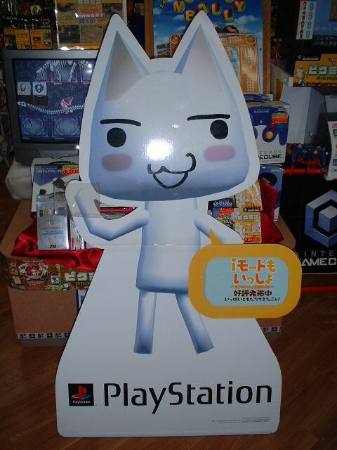 PSで発売され、一躍大人気となった「どこでもいっしょ」。 このゲームの主役と言っても過言ではないトロのPOPを差し上げます。 条件は送料を負担して頂ける事。それだけです。もしくは直接ファミコンプラザ里町店に取りに来て頂いても結構です。 フラッシュが反射しちゃってますが、相当でかいのです。 こちらはご希望頂いた方に差し上げます。 とりあえず、11月7日AM10:00までに応募して頂いた方の中から抽選とさせて頂きます。
