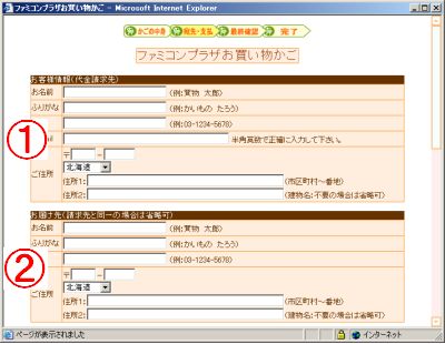 この画面でお申し込み頂いた方の情報、お届け先の方の情報を入力します。