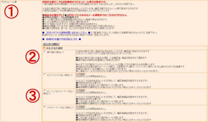 一番上にあるのがクロネコヤマト便(宅急便)での発送です。